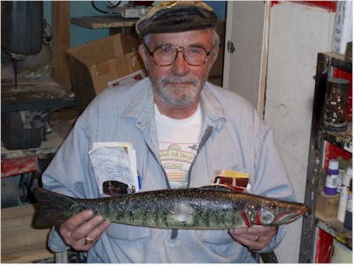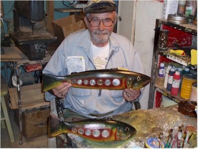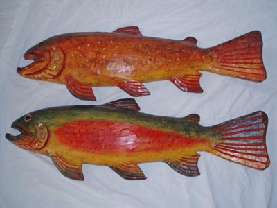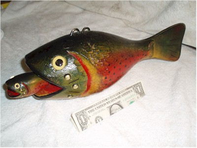 Rainbow Trout Eating a Trout (large old distressed wooden